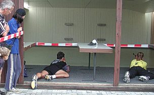 dann im Stehendschießen auf 5 Klappscheiben ihre Treffer im Ziel